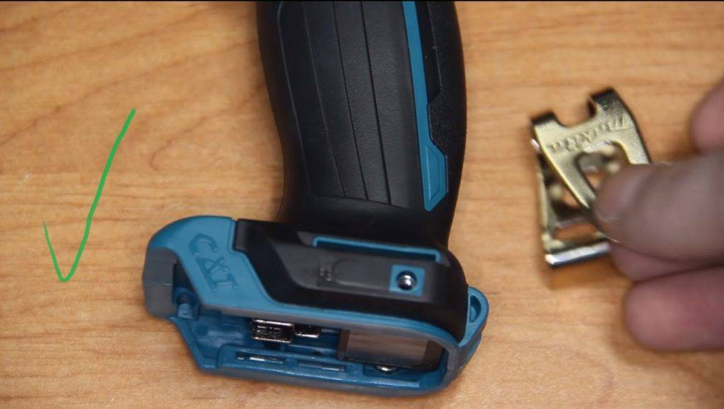 Еще одним способом отличить оригинальный шуруповерт Makita от подделки, является крючок для крепления на пояс. В оригинале он может устанавливаться с обеих сторон инструмента, как слева, так и справа.