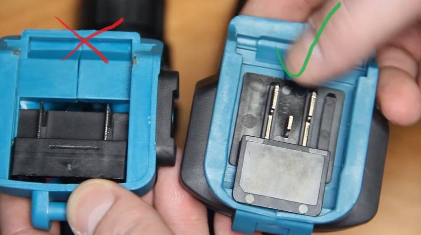 Аккумуляторные батареи – это также способ отличить оригинальный шуруповерт Makita от подделки. Если вы посмотрите на фото, то сразу увидите разницу.