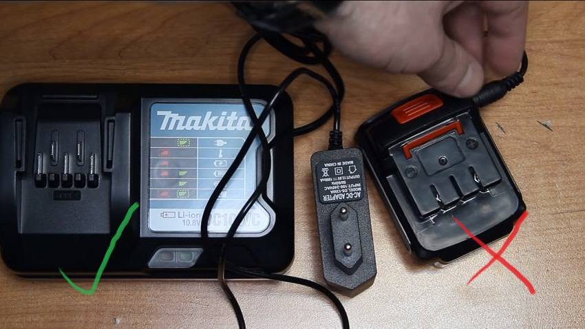 У неоригиналов зарядки обычно находятся в самом аккумуляторе. Настоящие шуруповерты другие. На подлинных зарядных устройствах присутствует подробная информация об изделии, производителе со всеми маркировками. У дешевых аналогов этого нет.