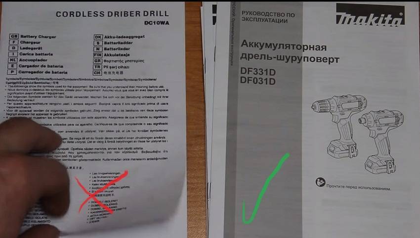 Неоригиналы часто комплектуются только инструкцией. Причем без указания модели, а иногда даже и марки шуруповерта. Плюс сама инструкция только на английском или на языке другой страны.