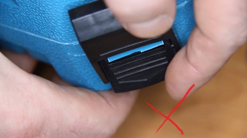 На защелках оригинального кейса нанесены названия инструмента тиснением, выдавливанием. У поддельного перфоратора таких надписей на защелках, как правило, нет.