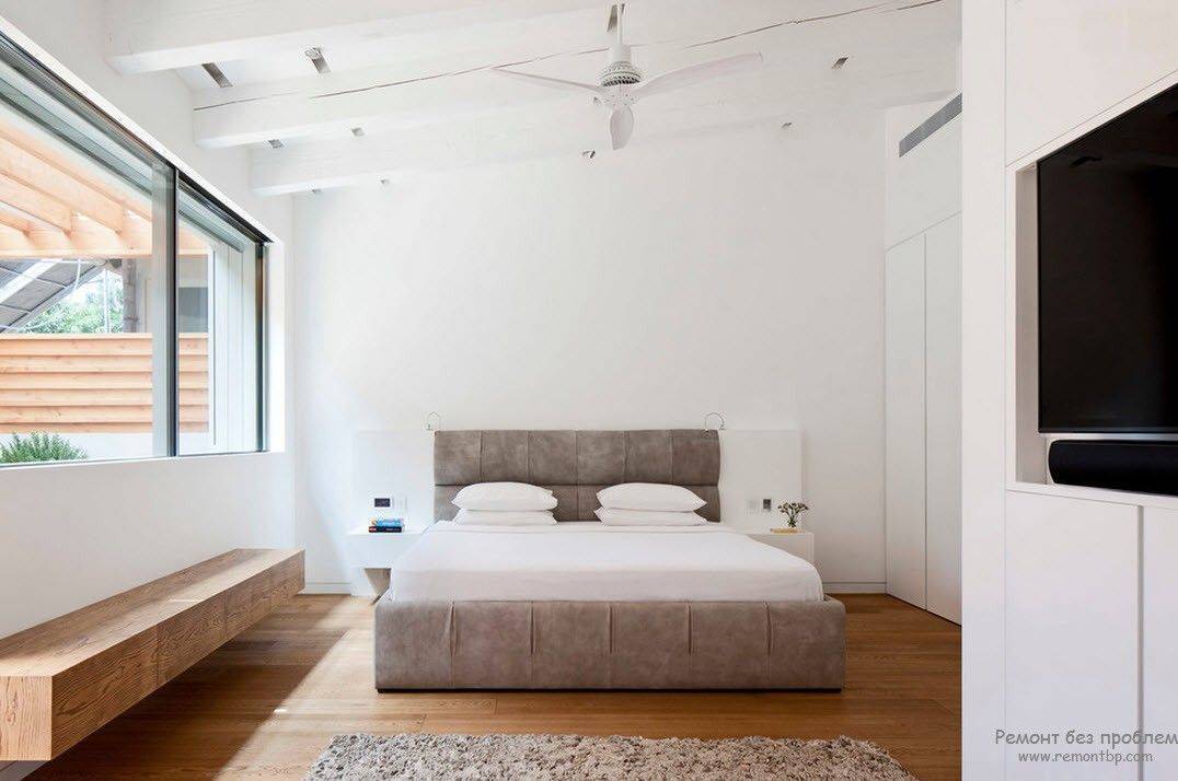 - Минимум мебели и декора существенно облегчают уборку спальни, поэтому в помещении не скапливается пыль.