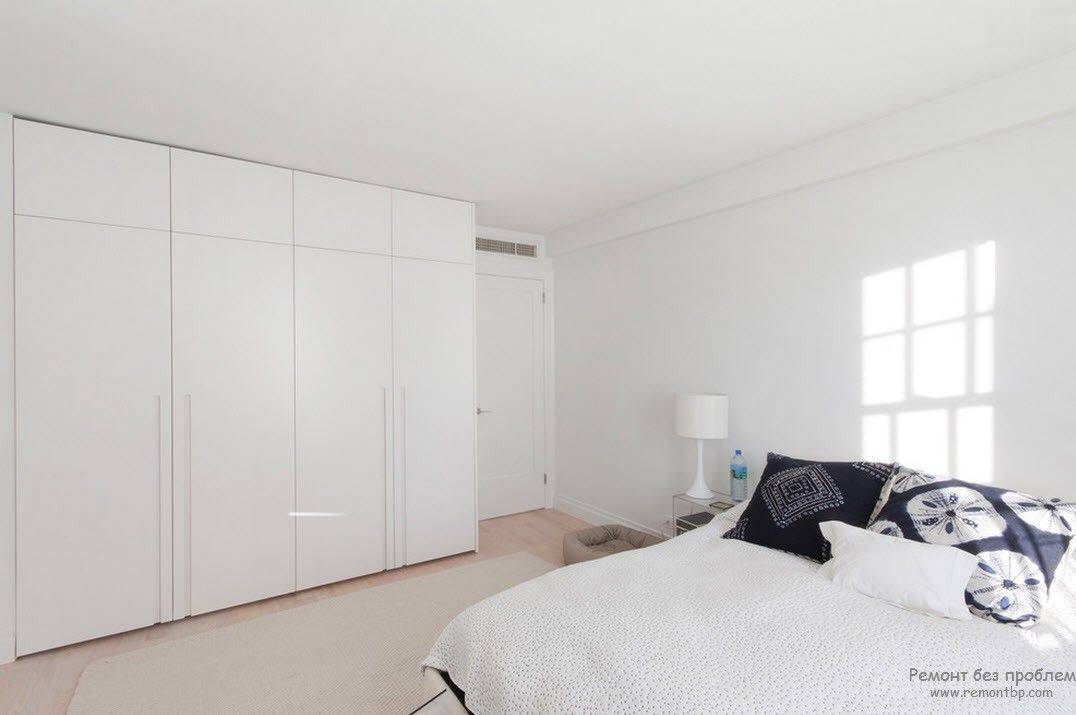 «Минимализм в интерьере спальни категорически не приемлет никакой навесной мебели: всевозможные полочки и стеллажи необходимо полностью исключить»