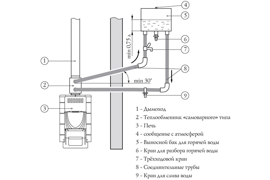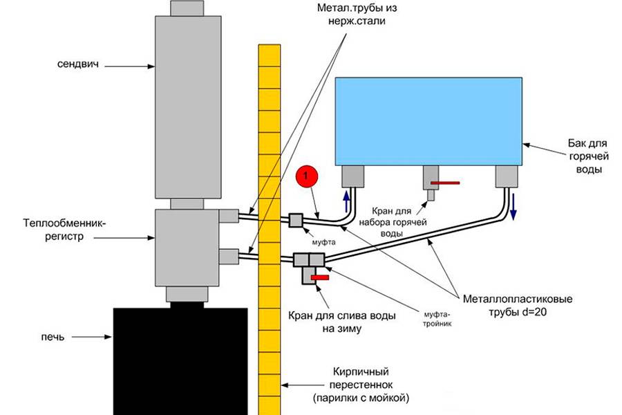 Схема установки бака для банной печи