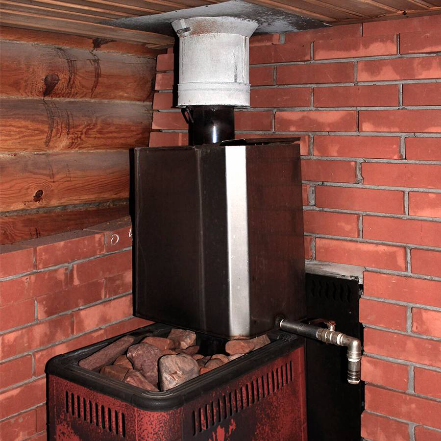 Готовый бак на печь для бани является отдельным коленом основного дымохода. Поэтому все работы по его установке можно провести самостоятельно.