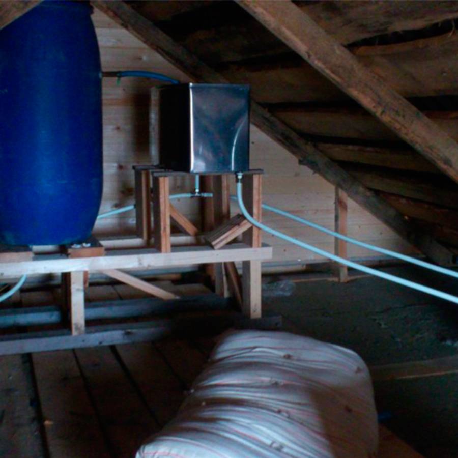 Бак с подводкой воды, установленный на чердаке