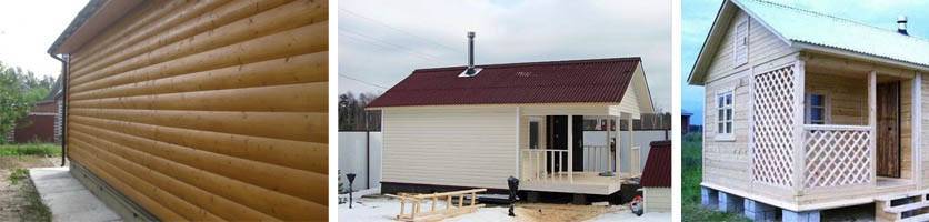 5. Наружная отделка. Строение оформляют дешевой вагонкой, красивым сайдингом или практичной штукатуркой. Самый презентабельный и солидный вид будет иметь облицовка брусовой имитацией или фасадной плитой.