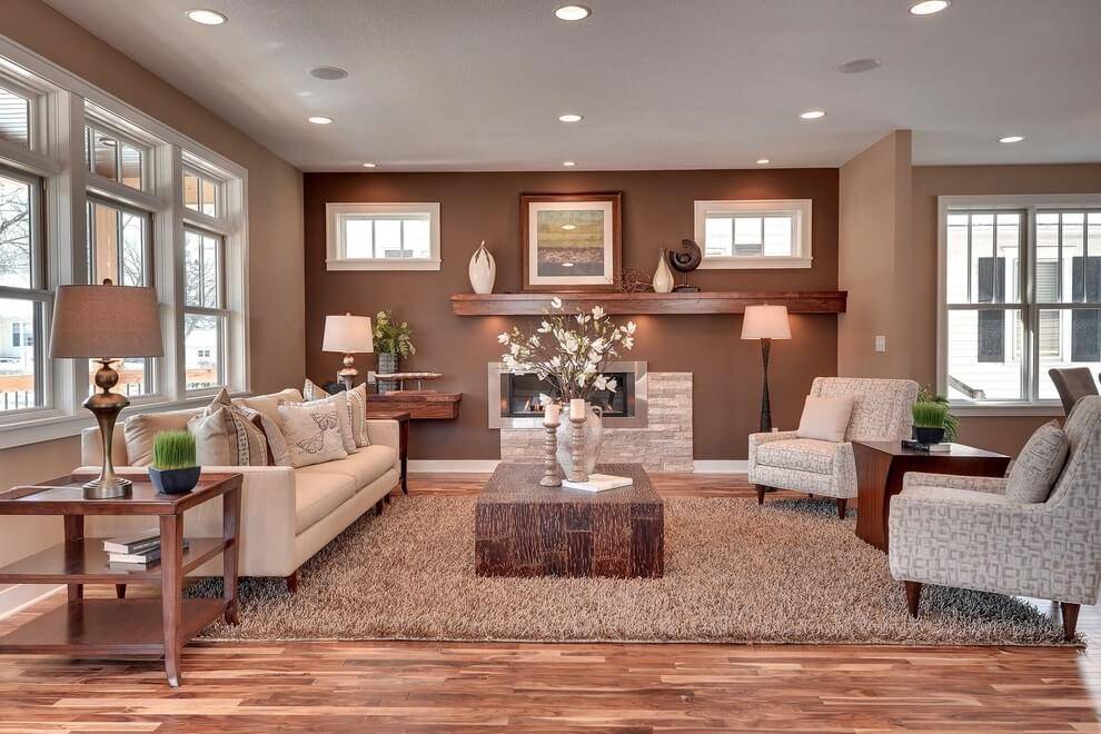 - С коричневым. Оттенки шоколада и кофе добавят обстановке тепла и уюта, а белый цвет придаст коричневой гамме свежести.