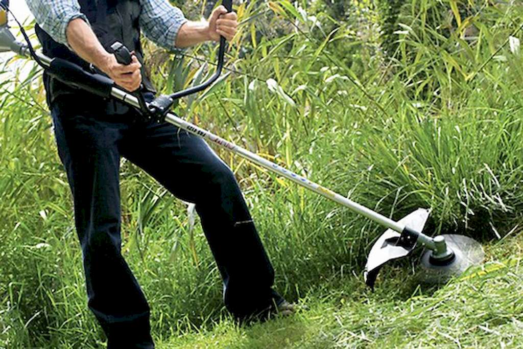 - Характер растительности на участке? Хоть производители и доукомплектовывают ножами маломощные электротриммеры, особые надежды на них возлагать не стоит. Эти агрегаты рассчитаны на газонную траву и аналогичные растения с тонкими стеблями. При помощи ножей (часто пластиковых) можно справиться лишь с более толстым бурьяном или мягкими ветками кустарника. Но в очень небольшом количестве. Для сильно заросших территорий подойдет только мотокоса. Именно она успешно одолеет многолетнюю растительность.