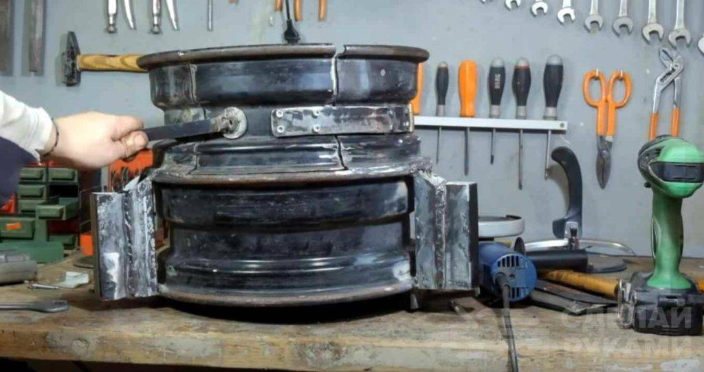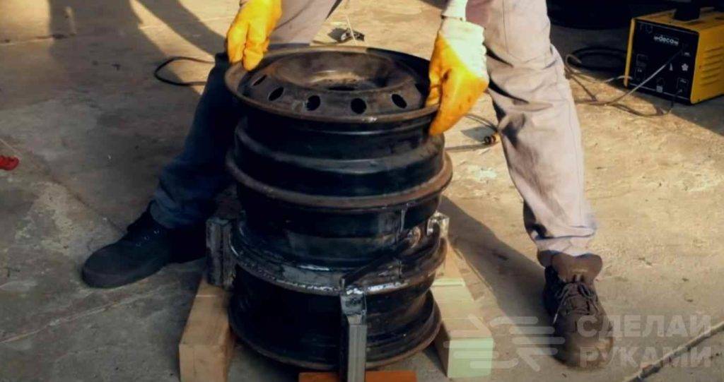 Поэтапное изготовление печной конструкции из автомобильных дисков