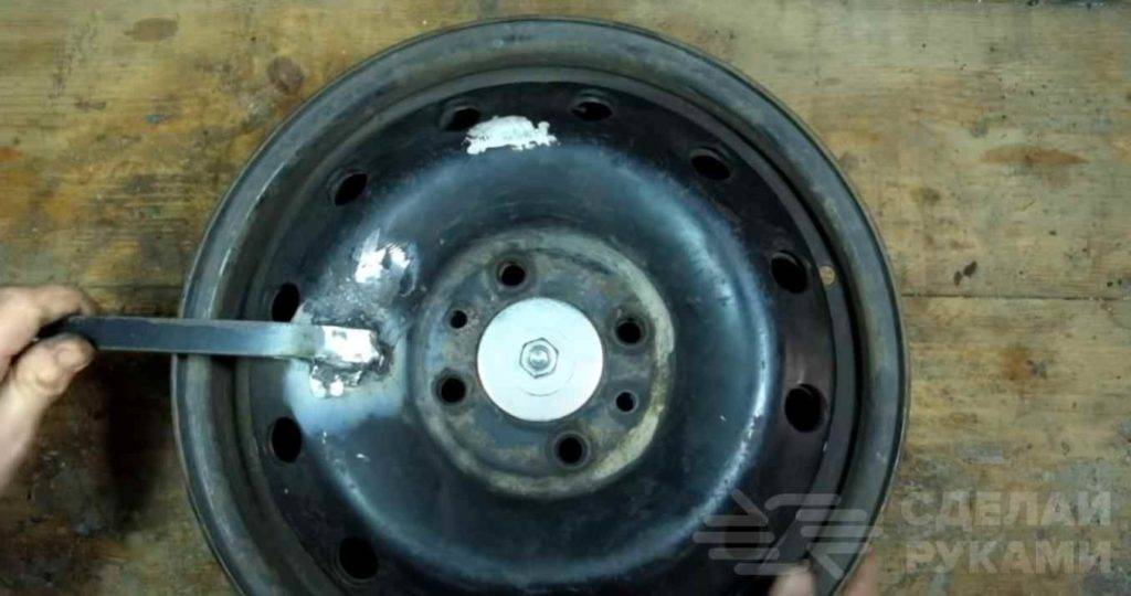 В данном случае для изготовления мини буржуйки потребуется три одинаковых обода от автомобиля.