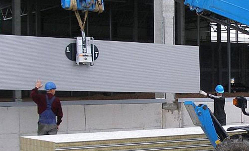 Обратите внимание! В стыках между панелями одного горизонтального ряда прокладывают уплотнитель или слой минеральной ваты. Для стеновых элементов шириной 4 м достаточно изоляционного шва в 15 мм, для 6 м — 20 мм