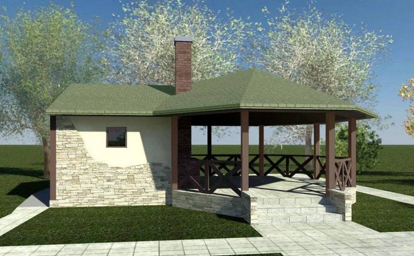 Пространство такой постройки будет условно разделено на хозяйственный блок, площадку для отдыха и кухонную зону