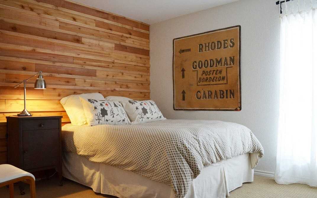 Очень стильно и модно обшивать стены не полностью, а в отдельных местах, при этом доски можно выкладывать в виде елочки, диагонально или под углом.