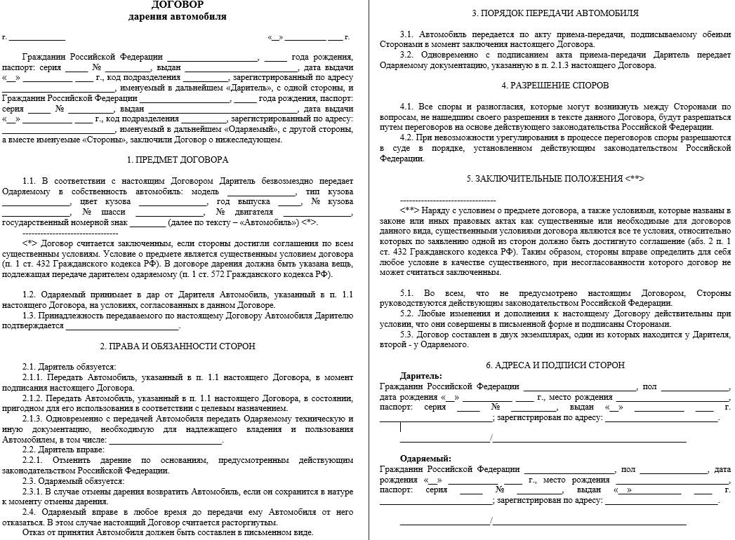 Договор дарения, или дарственная, — это документ, по которому одна сторона передает другой стороне бесплатно имущество при жизни. Дарение на случай смерти не разрешается (ст. 572 ГК РФ).