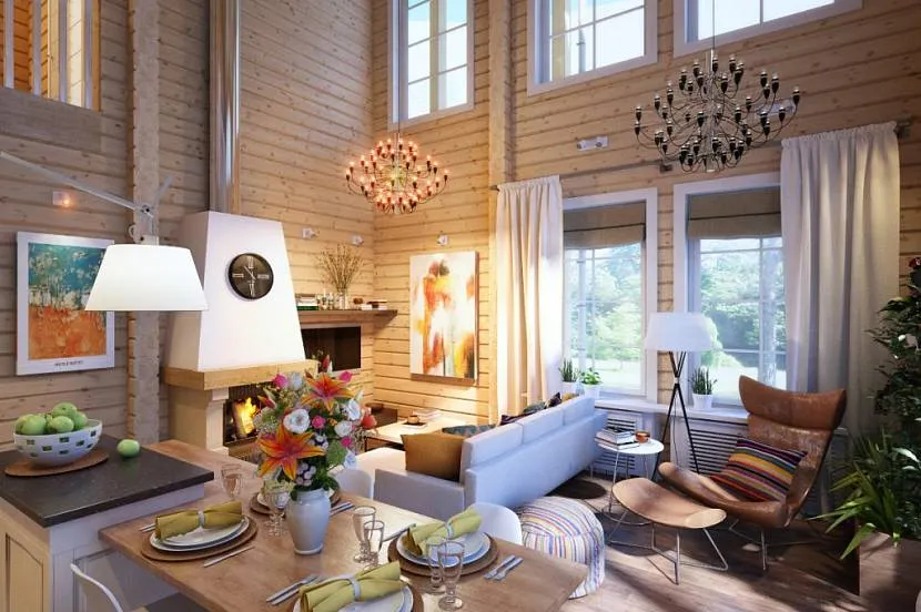 То же самое и с потолком. Не стоит скрывать всю красоту дерева и лишать себя возможности жить в экологичном интерьере.