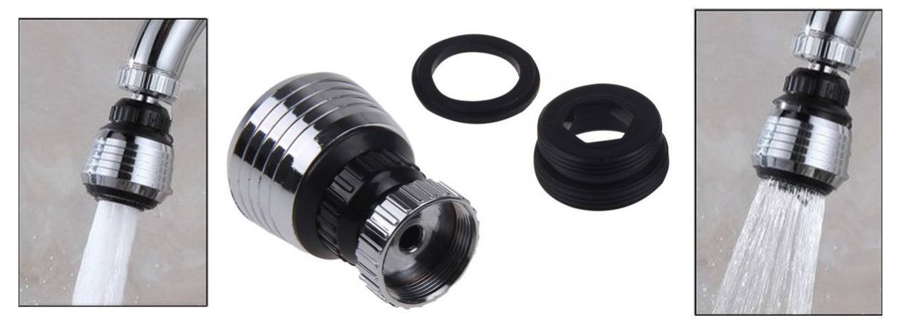 В домах с отличным напором водопроводной воды можно установить аэратор для смесителя вращающийся. Благодаря встроенным в него шарнирам возможно переключение между режимом обычной струи или душа, или же направить струю– нужно всего лишь повернуть насадку.