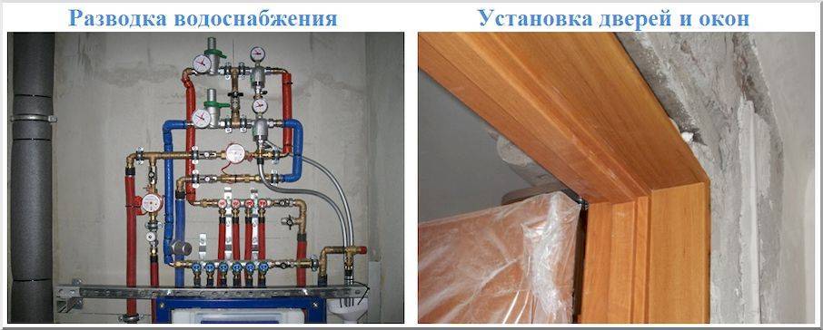 Перед чистовой отделкой монтируется трубная разводка, устанавливаются дверные коробки и оконные рамы