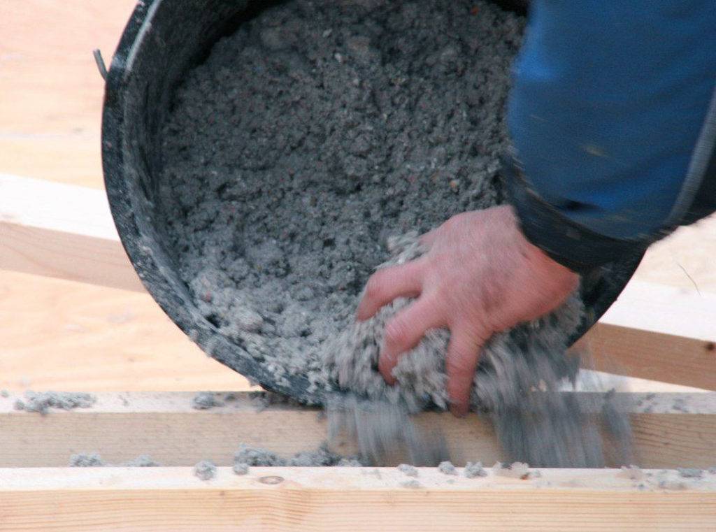 Утепляя пол межэтажных перекрытий необходимо помнить, что толщина слоя материала должна быть 10-20 сантиметров, а для нижних и верхних этажей — 20-30 сантиметров. Плотность при ручной открытой засыпке — 30-35 кг/м3, при механической задувке в закрытую полость – 40-45 кг/м3, а при механическом открытом нанесении плотность — 35-40 кг/м3.