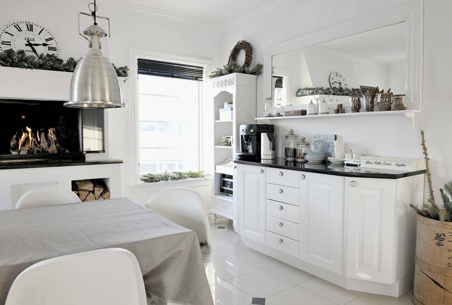 Указанные особенности призваны создать в помещении гармонию света и цвета. Настроение скандинавских стран передают также живые цветы, расставленные по полкам или подоконнику, высокие напольные кувшины и фото в рамках на стену.