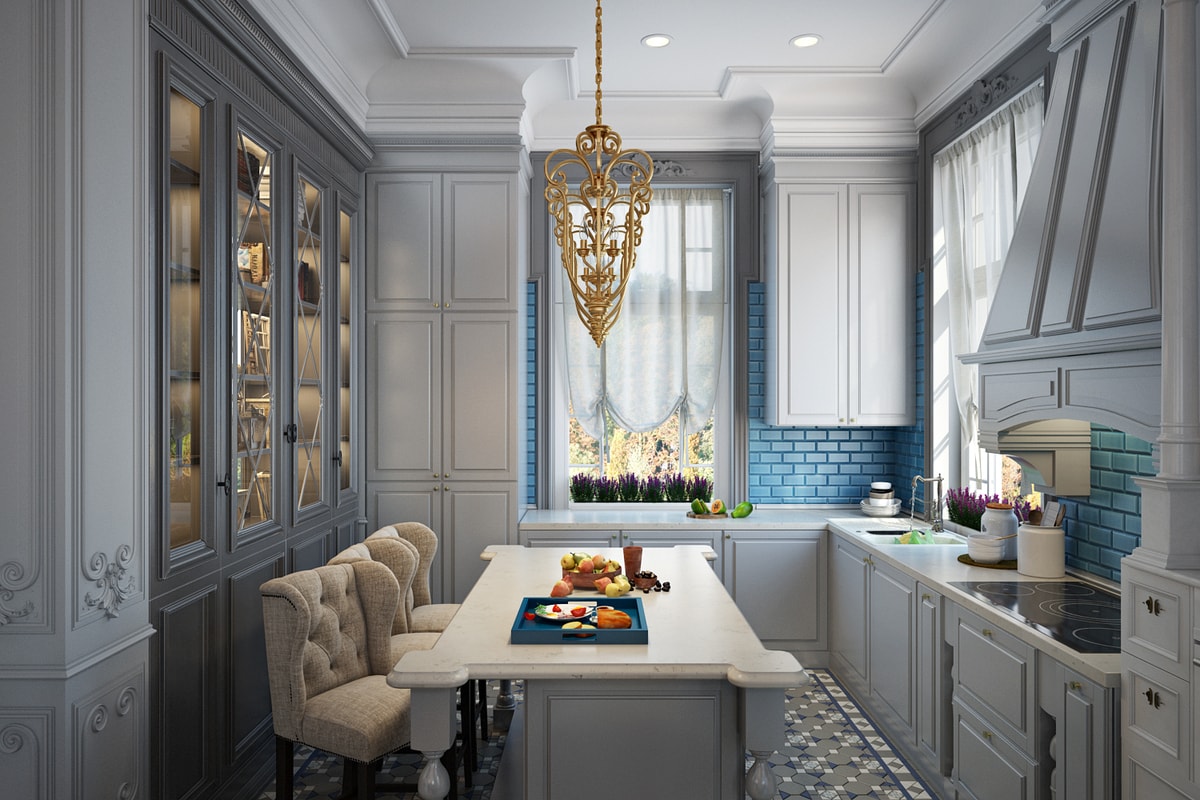 Кроме того, кухня в стиле неоклассика не должна содержать в себе ни одного признака на экономию средств хозяев дома – интерьер должен выглядеть по-настоящему шикарно. В отличие от привычной классики, здесь не так много декоративных элементов, громоздкой мебели.