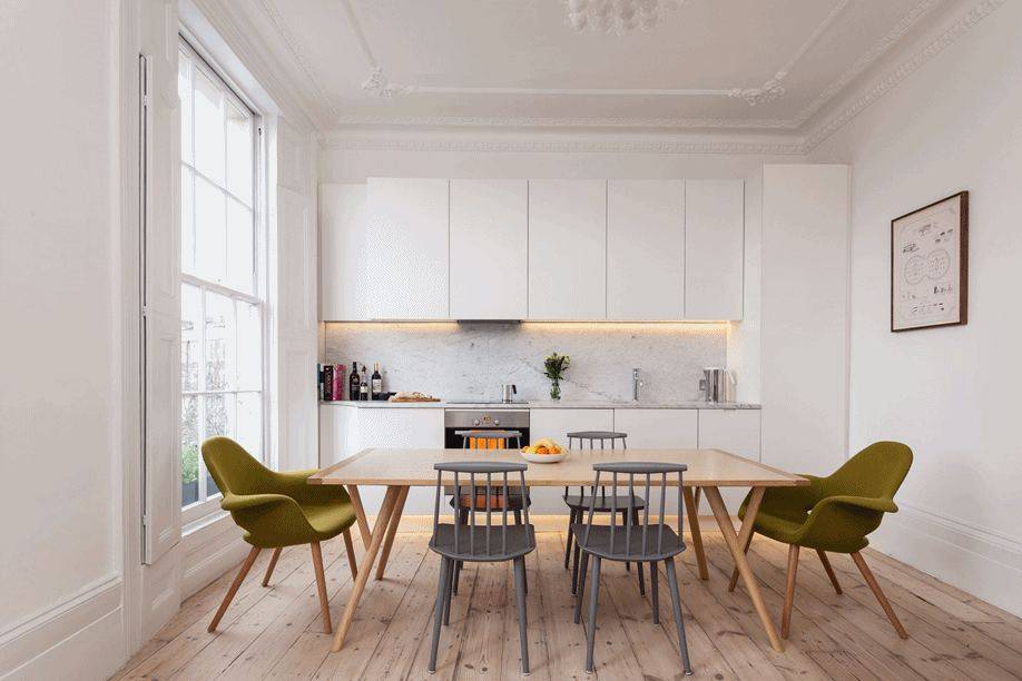 «Принятие решения о том, какие цвета использовать на кухне, никогда не бывает простым, с бесконечными вариантами не только цвета стен, но и сочетания шкафов», — объясняет Лара Хьюз, дизайнер кухонь в Neptune. «Светлые оттенки краски — идеальный инструмент для балансировки тонов на кухне и создания контраста».