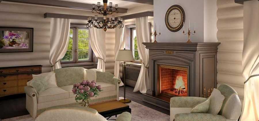 Серебристые, словно от мороза, доски, светлые полотна штор и мебельной обивки полностью соответствуют стилю. А тончайшая резьба по дереву в сочетании с запахом смолы, наполняющим комнату, создадут в ней неповторимый уют.