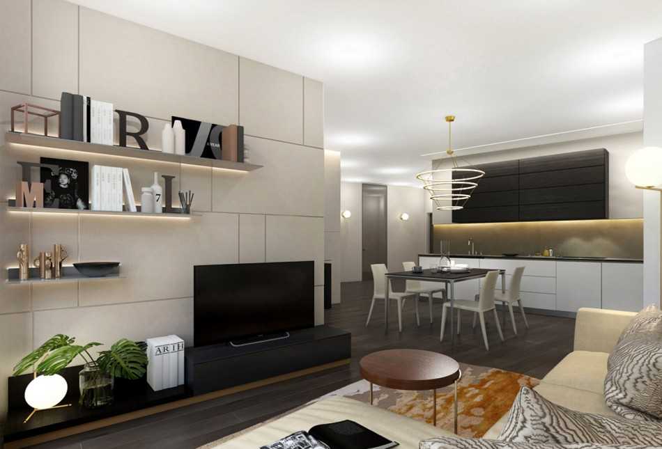В современной квартире бархатная мебель, портьеры, подушки придают дизайну нотку роскоши.