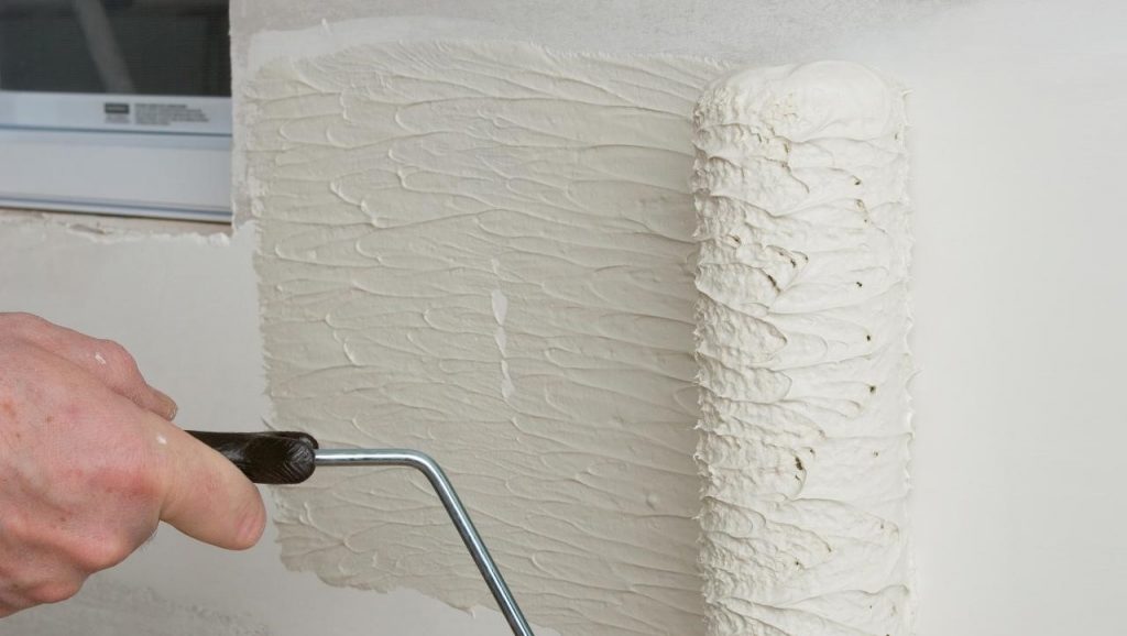 - шпателем укладывается слой раствора в 3 мм, и после схватывания поверхность прокатывается валиком с короткой шубкой;
