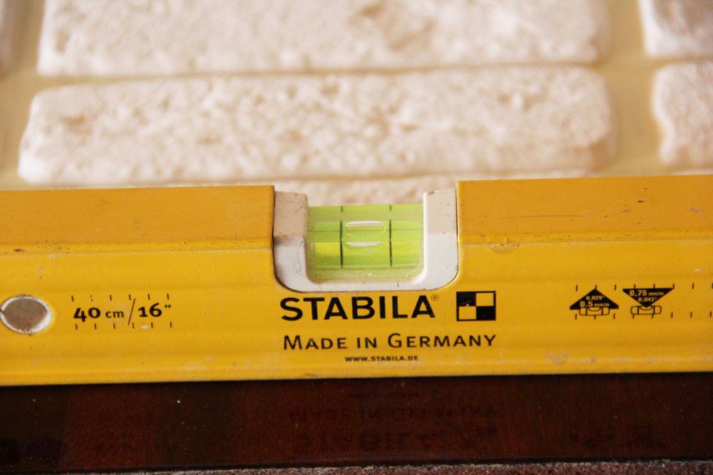 Между точками натягивается красящий шнур и отмечается линия. Ее также можно провести по уровню, если он достаточной длины. Клей может наноситься сразу на две поверхности. При этом его необходимо распределить по плоскостям зубчатым шпателем. После нанесения камень прочно прикладывается к отмеченному месту и ненадолго фиксируется.