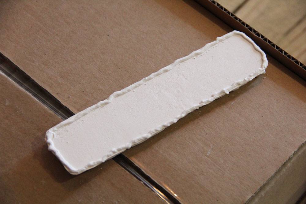 Сам процесс заливки описывать не имеет смысла, но стоит сказать, что примерное количество гипсовой смеси стоит рассчитать заранее, и для первой заливки сделать его на 10 – 15%!б(MISSING)ольше требуемого, а уже при второй внести нужные коррективы. Готовая смесь пригодна для заливки в течение 5 – 10 минут максимум. Гипсовая смесь разравнивается шпателем по поверхности формы, а излишки ее удаляются.