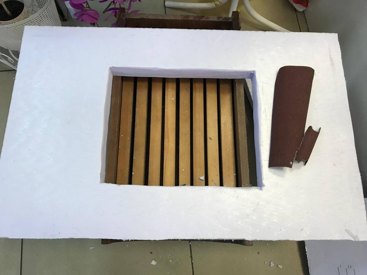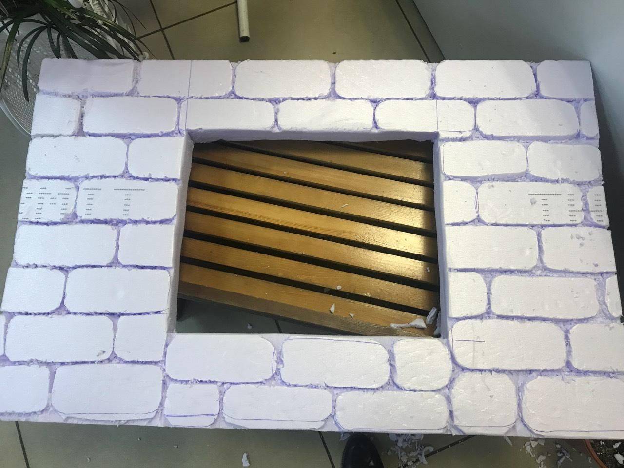 - В качестве основы и верхней панели для камина используйте пенополистирол.