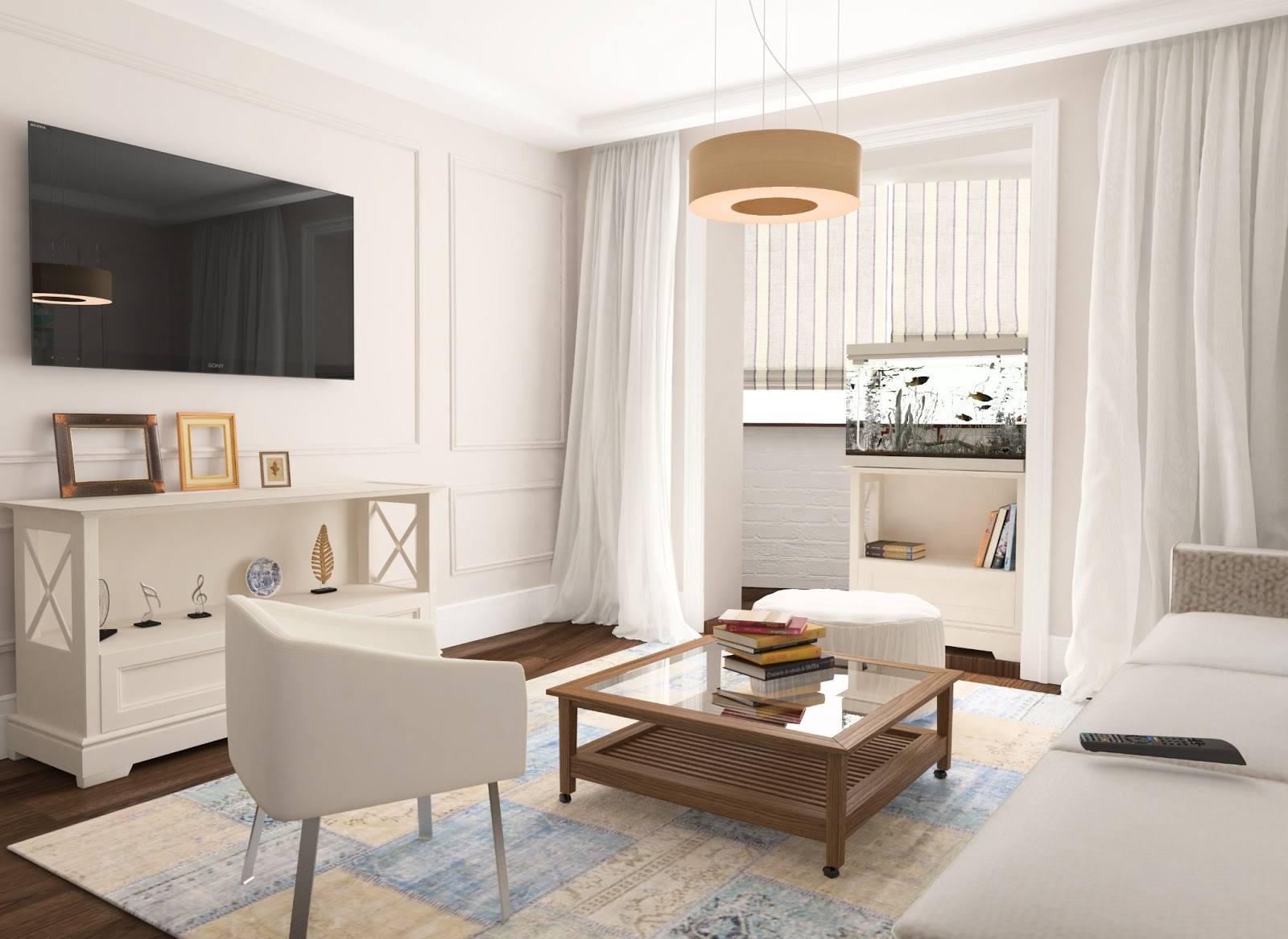 На такой небольшой площади можно разместить небольшие кресла и столик