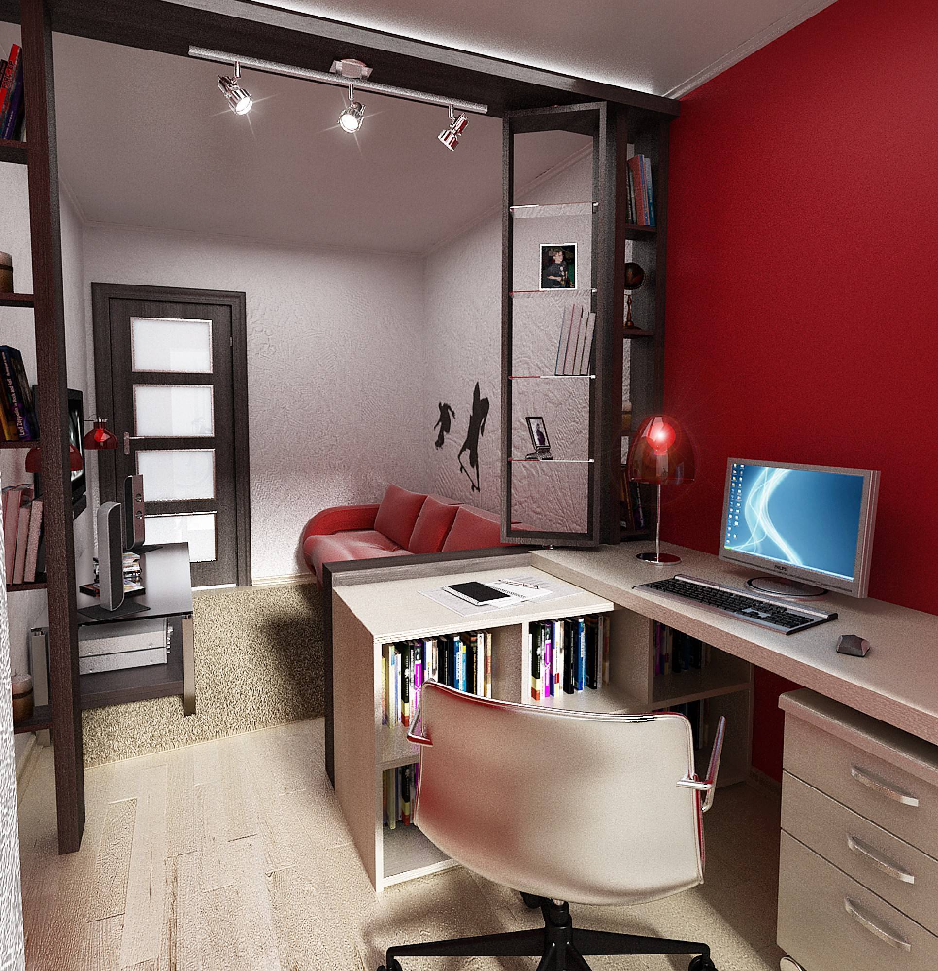 Спальня подростка, отличающаяся маленькой площадью, требует очень аккуратного оформления, умеренное количество декора и грамотной меблировки, не загромождающей пространство. Подобное помещение можно зрительно увеличить благодаря обилию искусственного или естественного освещения, светлой оттеночной палитре, зеркальным или глянцевым поверхностям. В данной комнате не следует устанавливать массивные мебельные предметы и использовать тяжелые шторы и текстиль.
