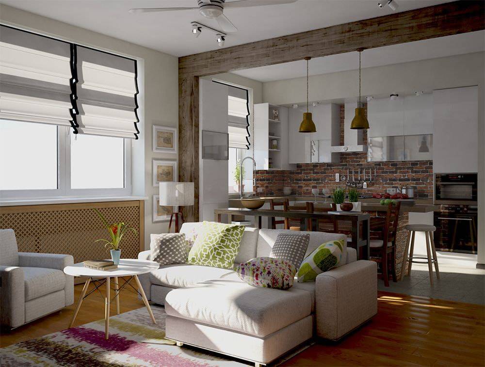 Подбирая стиль оформления для комнаты, следует особое внимание уделить зонированию кухни и гостиной. Разделив помещение на зоны, можно намного быстрее делать уборку, следить за порядком, отдыхать