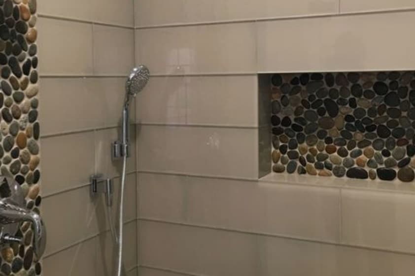 В идеале, перед поклейкой гальку лучше распиливать надвое. Так вы сэкономите на клее, а камни не будут сильно выдаваться от стены. Для хорошей долговечной фиксации используйте специальный клей-шпаклевку для камня или МС-герметик (гибридный герметик). Перед нанесением поверхность плитки ошкурьте крупной наждачной бумагой. Это улучшит сцепление клея с кафелем.