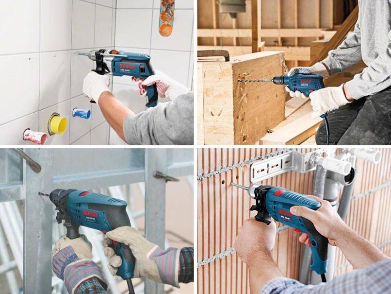 Основное предназначение домашних дрелей — качественное сверление отверстий в различных материалах. Электродвигатель приводит во вращение патрон. Зафиксированное в нем сверло врезается в обрабатываемый материал, проделывая в нем отверстие. Так протекает стандартный рабочий процесс при использовании так называемой безударной дрели. Инструмент, снабженный механизмом ударного действия, помимо вращения рабочего элемента, обеспечивает его возвратно–поступательное движение, оказывающее пробивающее воздействие на поверхность.