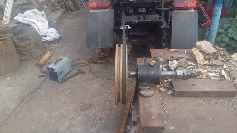 Цепную или ременную передачу нужно подобрать таким образом, чтобы число оборотов на конусном винте было примерно 500-700 обмин. На слишком больших оборотах полено может вырвать из рук.
