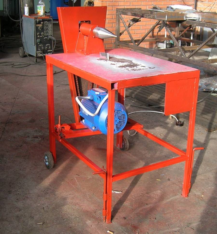 Станина — стол на который будут класться чурбаки. Изготавливается либо из листовой стали, либо из толстых деревянных досок, ножки к нему должны быть металлические 40 см длинной.