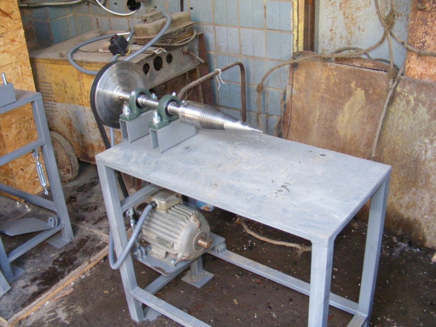 Непосредственно под конусом приваривается пластина. Она нужна для того, чтобы полено не проворачивалось при подаче на рабочий вращающийся инструмент.