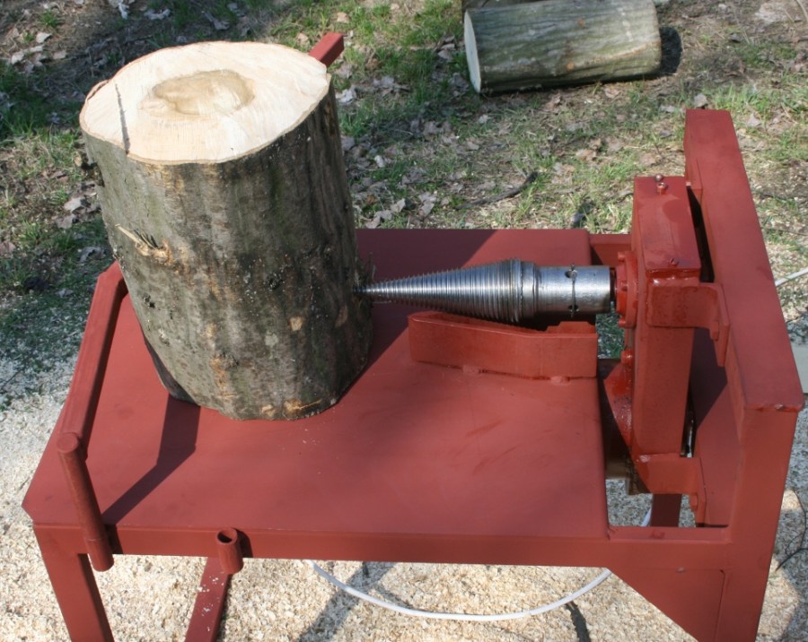 Принцип работы сравнительно простой. Поленья будут раскалываться с помощью конусного винта, имеющего крупную упорную резьбу. Винт вкручивается в древесину, что способствует её раскалыванию на части.