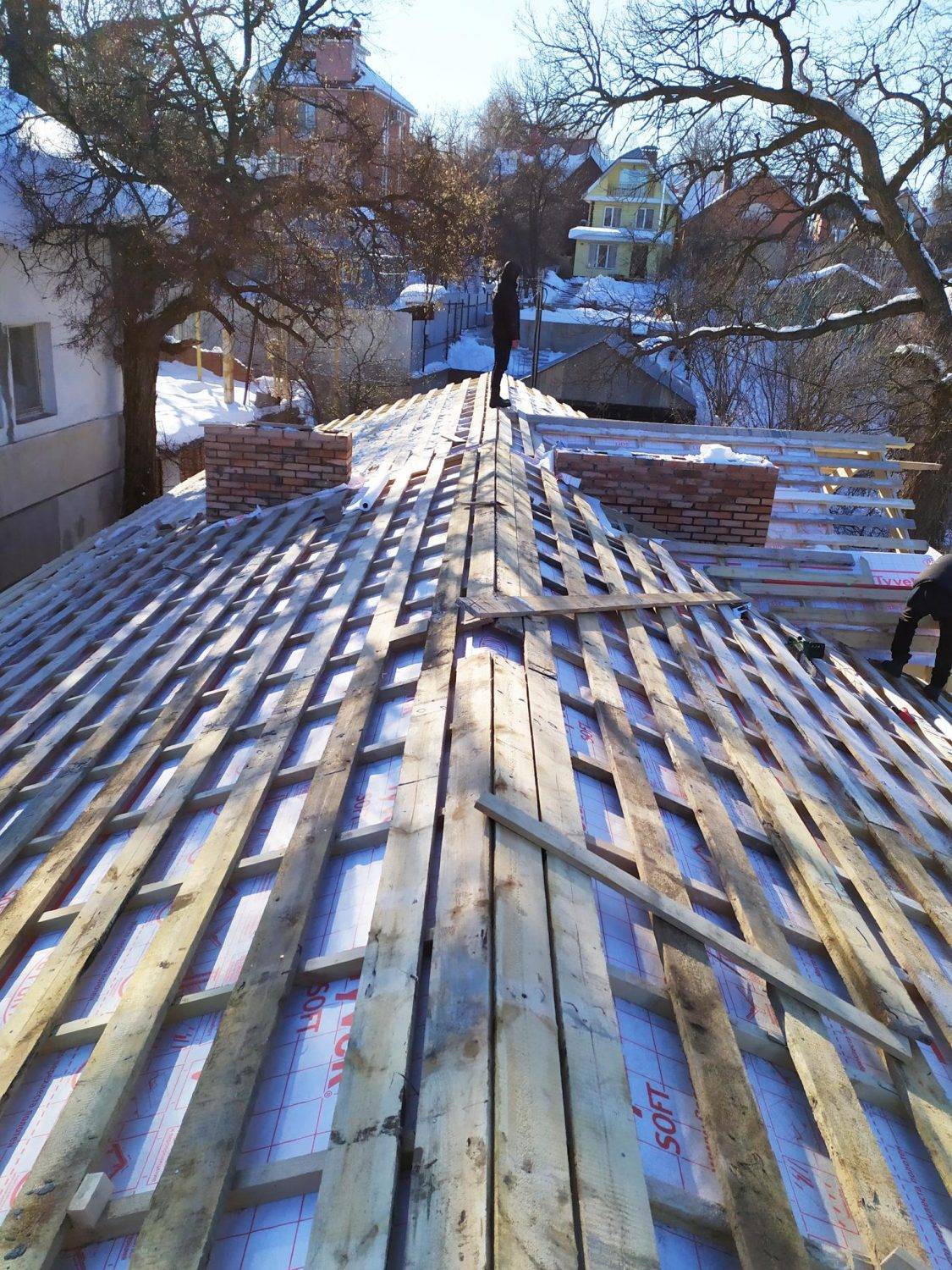 - монтаж контробрешетки, обрешетки, гидроизоляции;