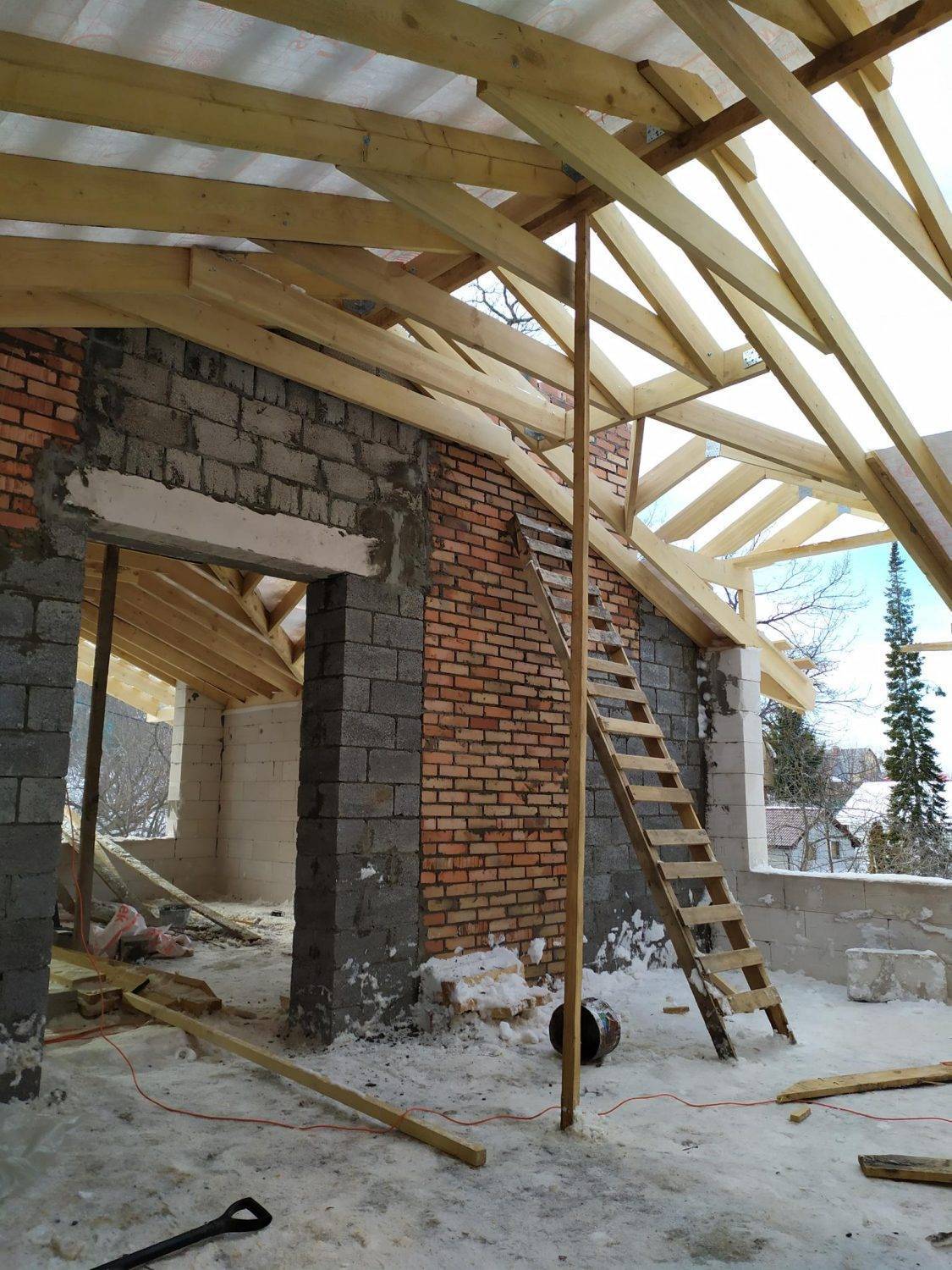 Этапы возведения двускатной крыши