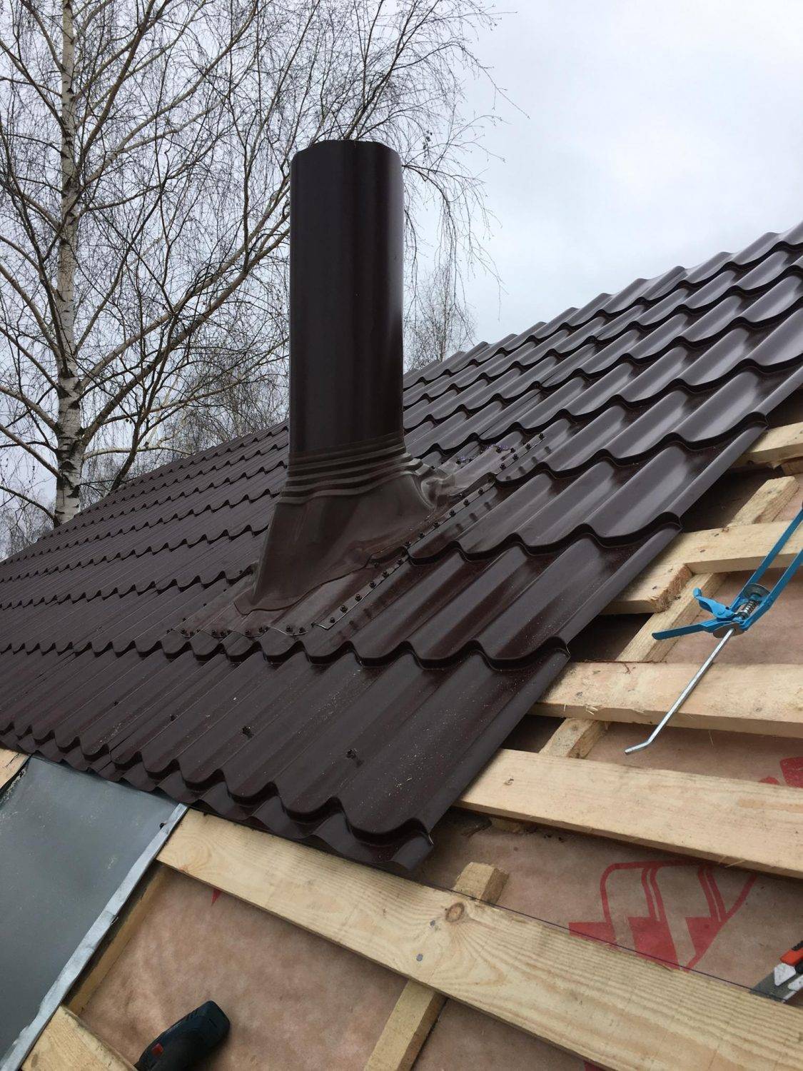 - установка нижней обрешетки, монтаж кровельного покрытия.