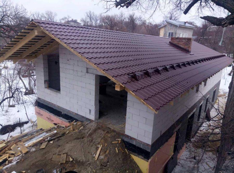 Заканчивается строительство укладкой кровельного материала. Пошагово расписать монтаж каждого материала, коих на строительном рынке представлено очень много, будет сложно.