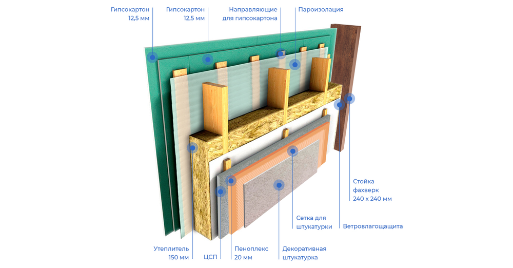 Дело в том, что каркас, сделанный из бруса большого сечения (например, 200х200 или 200х250 мм) является значительным мостиком холода. Помимо этого, между заполнителем и деревянными элементами конструкции («живым» материалом) могут появиться щели. Стену начнёт продувать ветром. Открытый каркас (древесина) из-за негативного воздействия атмосферных явлений (солнечных лучей, снега, дождя, частых переходов через «0») подвергается усиленному износу. Это приводит к необходимости регулярного ремонта и обновления фасада.