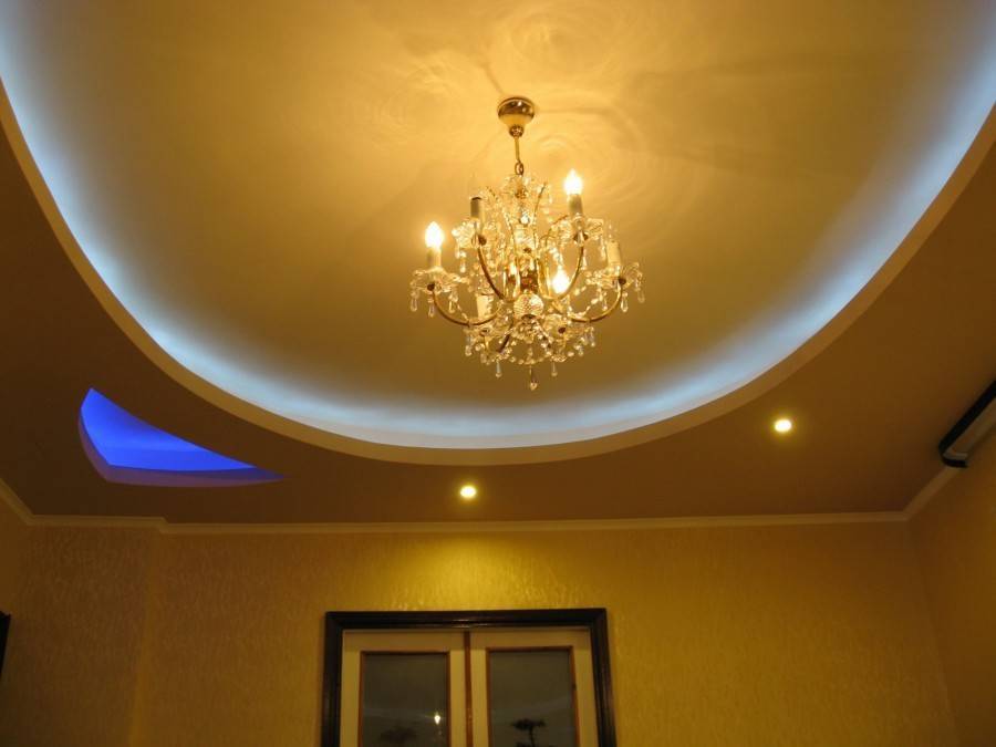 Гипсокартонный потолок с подсветкой может принять какие угодно формы и цвета, и в этом его основное преимущество. Жесткий каркас, сделанный по правилам, обеспечит беспроблемное существование этого элемента интерьера на десятилетия.
