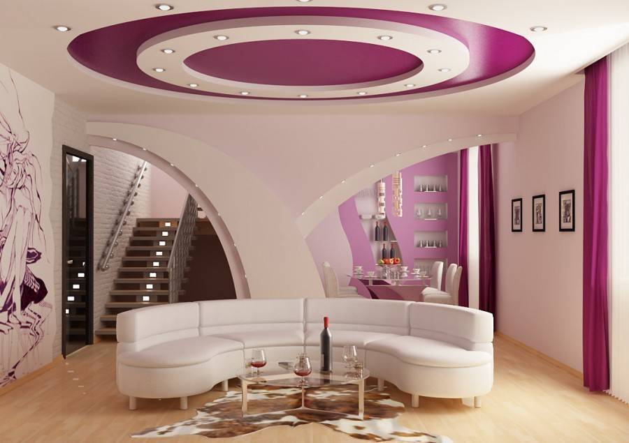 Двухуровневые потолки из гипсокартона, фото дизайна различных вариантов