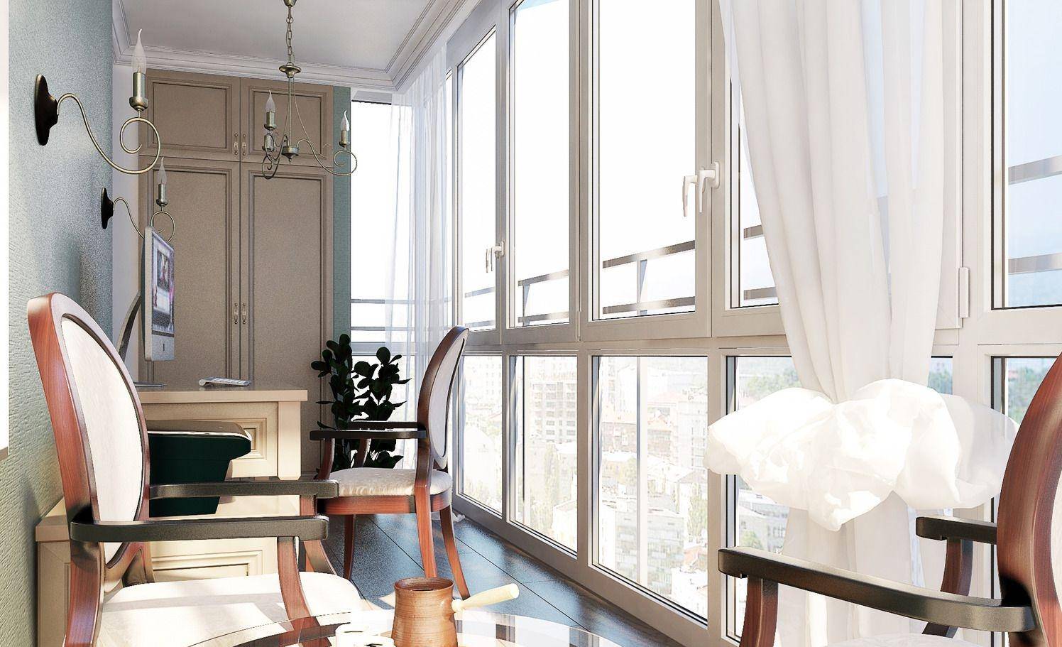 балкон с французским остеклением хорошо прогревается в межсезонье, что позволяет эксплуатировать его в качестве жилого помещения, при незначительном повышении затрат на отопление;