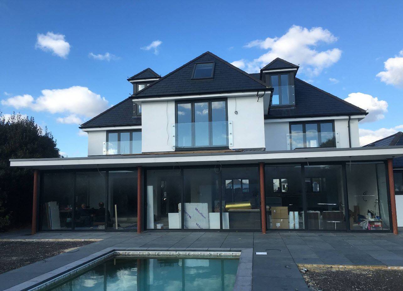 В сущности, такая конструкция представляет собой большое окно с остеклением от пола до потолка и разделенное на два уровня по горизонтали. Для нижнего уровня используется закаленное толстое стекло, верхний может оснащаться обычными стеклопакетами.